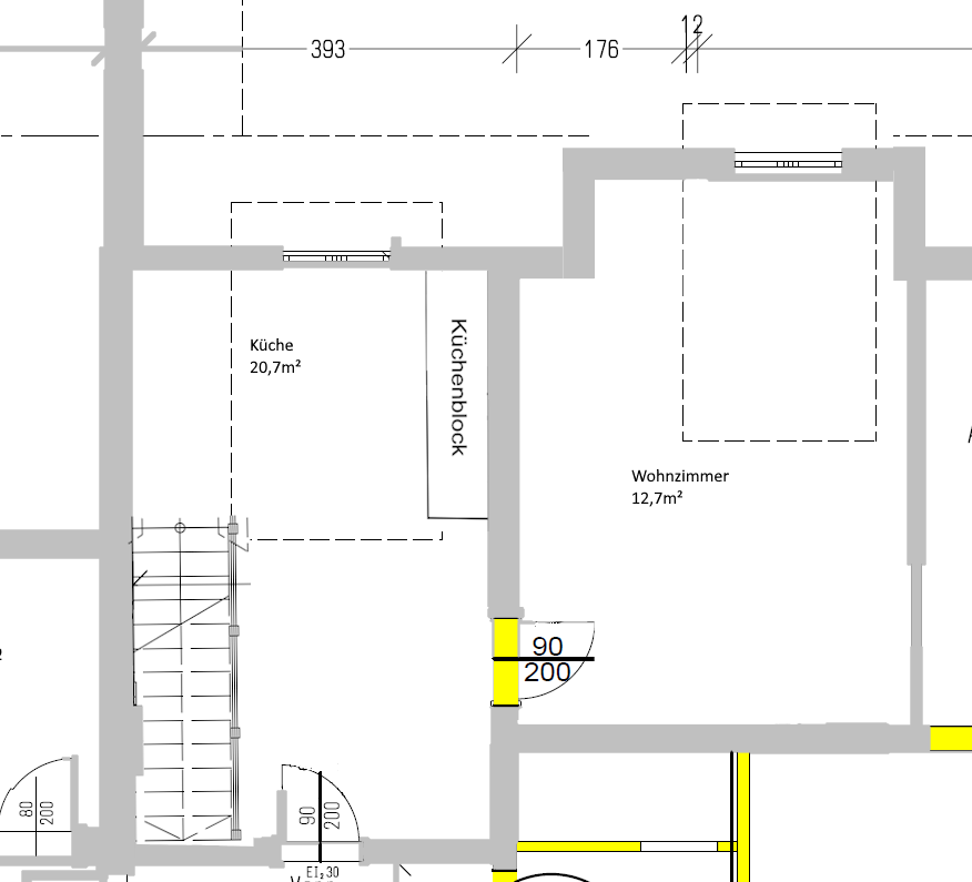 - Küche offen (kombiniert Wohn-/Esszimmer): 1